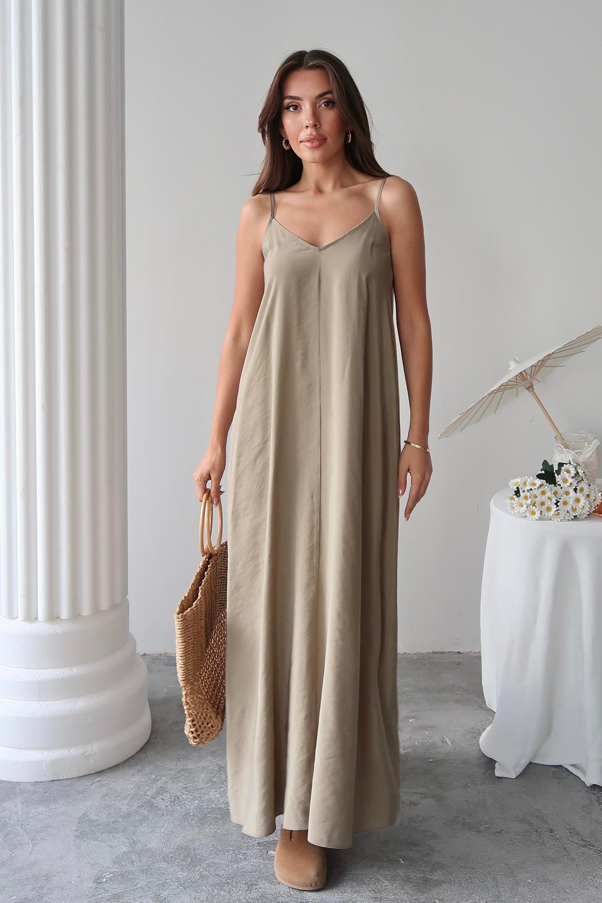 Mohinto İp Askılı Modal Kumaş Elbise Zeytin Yeşili